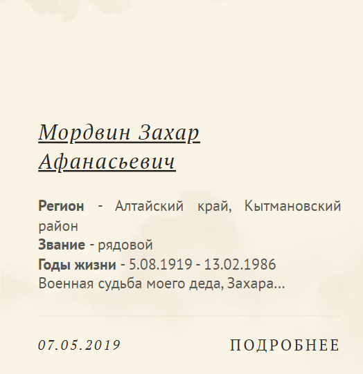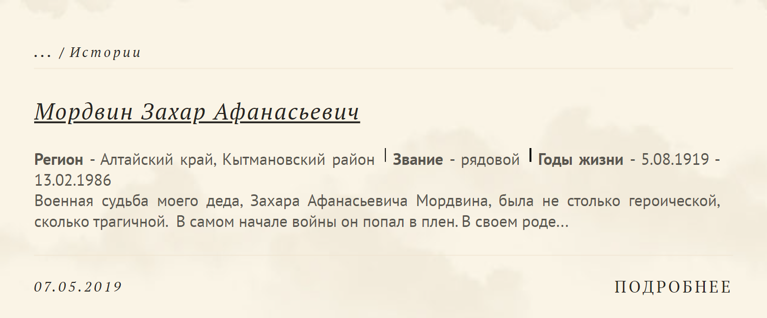 Через наш сайт и группы в соцсетях «соединились» поисковики и родственники, потерявшие связь родственники солдат. На сайте мы также размещаем информацию о розыске родных от поисковиков, транслируя ее и в наши группы в соцсетях. Мы стараемся сделать сайт Бессмертного полка помощником и реальным инструментом для эффективных поисков.